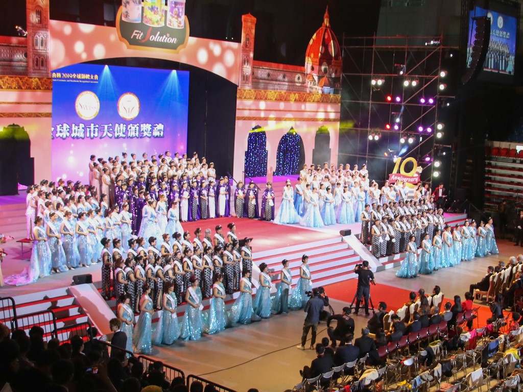 正當全體夥伴深受壯闊氣勢感染之際,由228位歷屆全球城市天使組成的壯美隊伍,也已經以優雅的步伐,從觀眾席後場緩緩步向前場,登上舞台。城市天使在舞台上站上定位依序排開的一刻,那一種磅礴的陣勢,已經不再是單純的美麗,因為美麗之中,蘊含著無限的力量。而這樣的畫面,也已經不單單是Total Swiss的一個經典,也可謂是世界直銷的一個空前的創舉。
