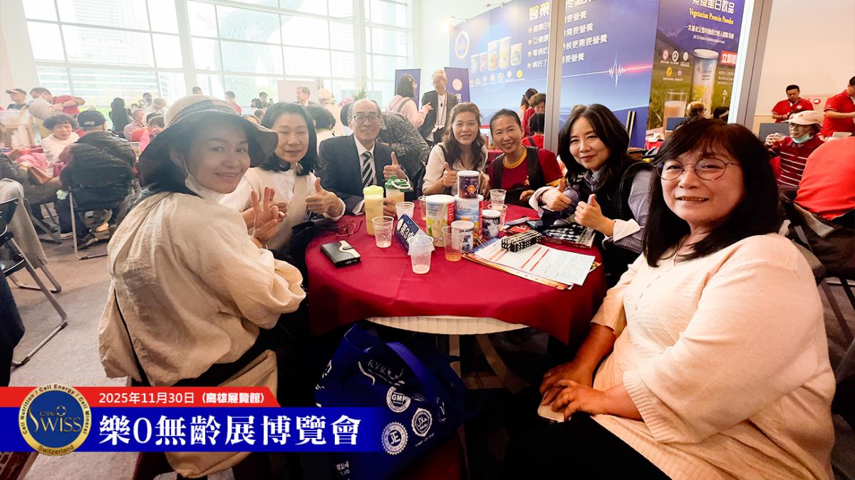 除了公司安排的洽談桌椅座無虛席外,Total Swiss展位靠近落地窗的場邊空地,也被超過十組夥伴用作臨時的分享溝通場所。因此,在高雄展覽館樂齡展現場,除了有好幾組夥伴主動出擊、舉牌邀約之外,還有近20組夥伴同時在跟體驗者進行進一步的溝通。
