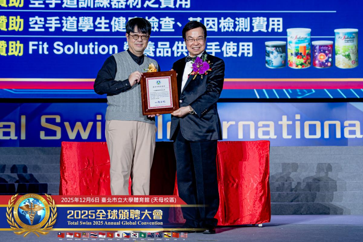四個階段的大進場完成合影之後,台北市立大學18位武藝精湛的同學,用融合舞蹈與武術的力與美,為大會進行開場表演。在開場表演贏得滿堂喝采之後,十位帥哥美女主持人吳玫儒皇冠、邱瑞靜皇冠、Corrinne總裁、余弘毅總裁、凌偉峻總裁、韓國翻譯佳佳、日本翻譯山下、越南翻譯玄玄、印尼翻譯妮妮以及泰國翻譯Lily,共同揭示2025年Total Swiss全球頒聘大會充滿使命與熱情的主題:「預防醫學大升級,不留貧病在人間。A New Era of Preventive Medicine. A World Free from Poverty and Sickness.」