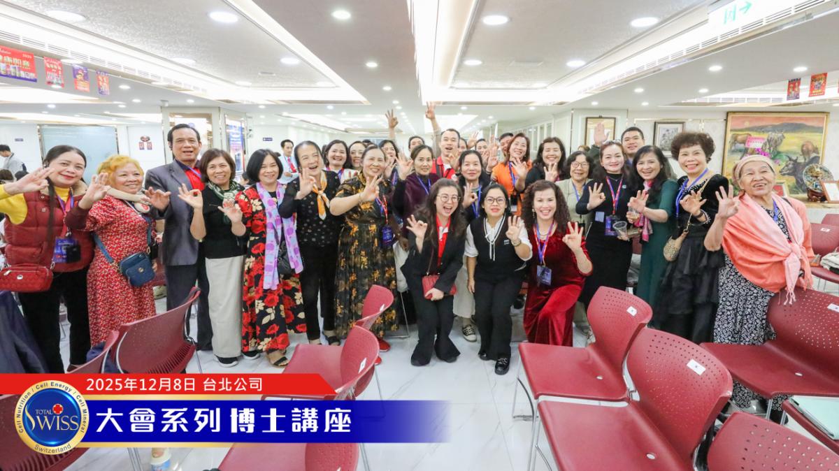 2025年12月8日,Total Swiss全球班聘系列活動最後一天,培訓課程的壓軸內容,由王博士親自上場,扮演Total Swiss醫療集團大轉型的擘畫師,並向全球夥伴展現出於2026年及以後Total Swiss遼闊而清晰的藍圖。有全球市場耕耘計畫,有藥局強化更新計畫,有線上行銷計畫,有台北港三萬坪基地建設計畫,每走一步,都是Total Swiss的大躍進,也是健康產業的新篇章。