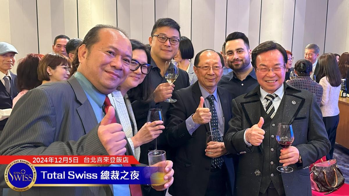 晚宴即將進入尾聲的時候,王博士十分肯定2024年總裁之夜全球一家的氣氛,他說:「Total Swiss 是一家人,We are family! 我們要一起成功,不分彼此。不管是哪個組織,我們都要互相幫助、互相扶持,讓我們的明天變得更好。」