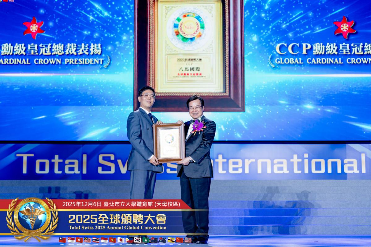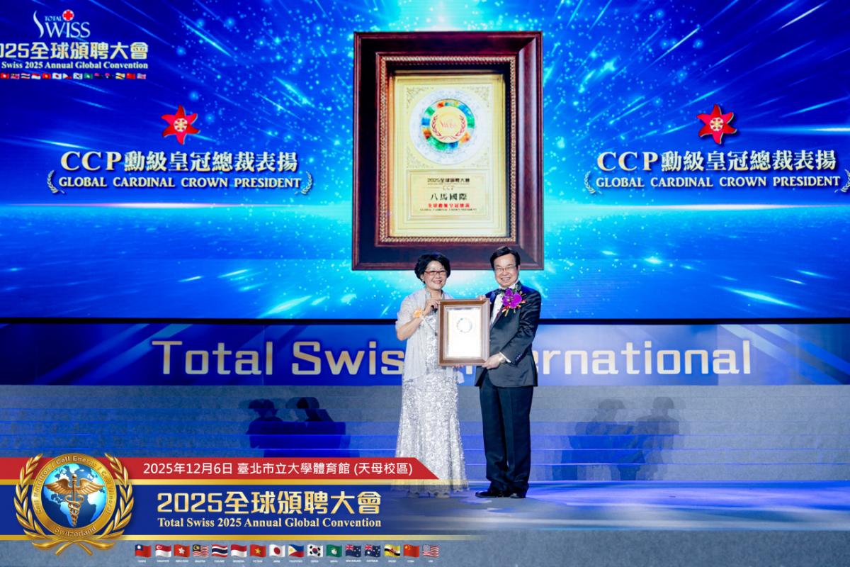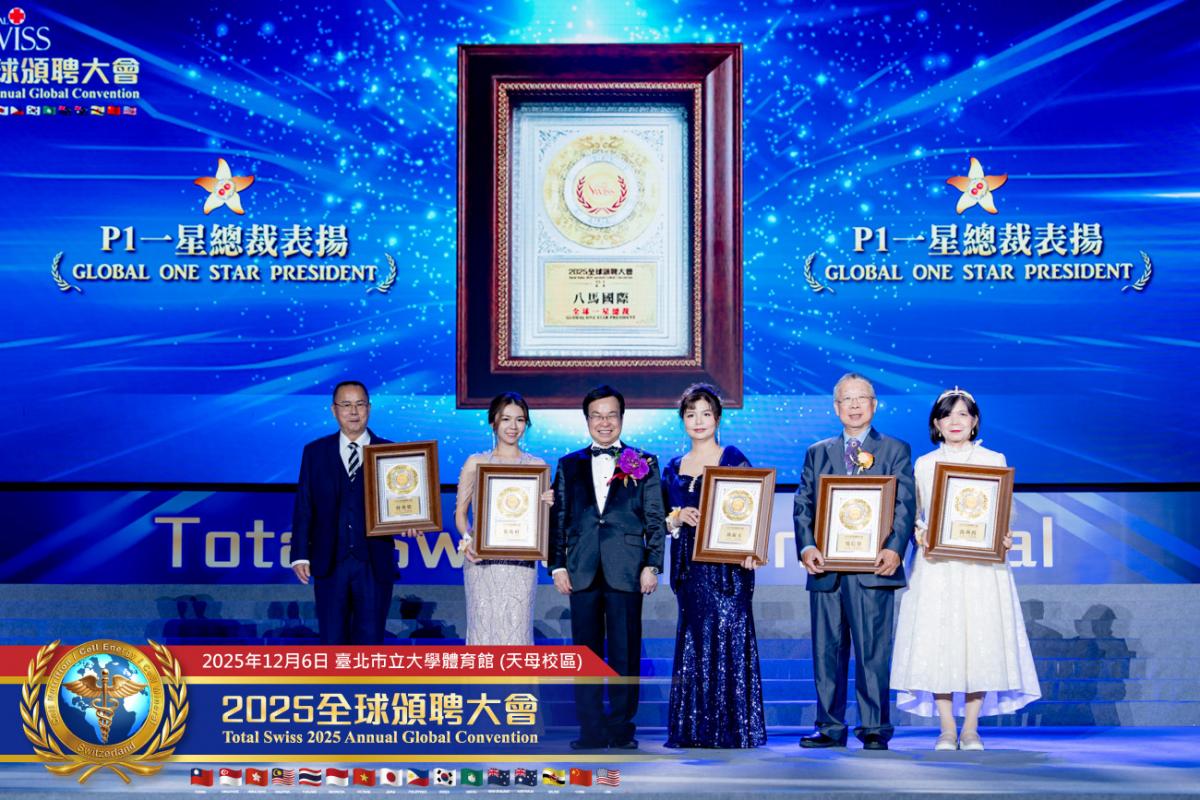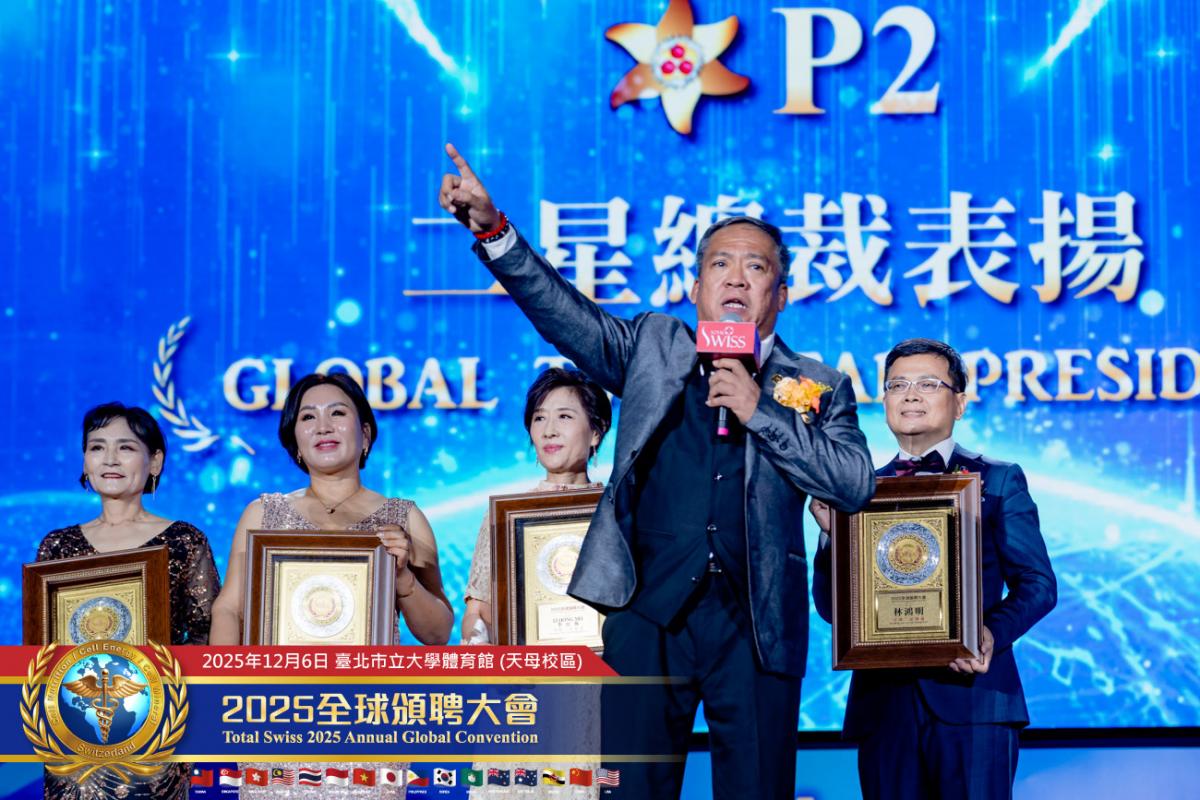 四個階段的大進場完成合影之後,台北市立大學18位武藝精湛的同學,用融合舞蹈與武術的力與美,為大會進行開場表演。在開場表演贏得滿堂喝采之後,十位帥哥美女主持人吳玫儒皇冠、邱瑞靜皇冠、Corrinne總裁、余弘毅總裁、凌偉峻總裁、韓國翻譯佳佳、日本翻譯山下、越南翻譯玄玄、印尼翻譯妮妮以及泰國翻譯Lily,共同揭示2025年Total Swiss全球頒聘大會充滿使命與熱情的主題:「預防醫學大升級,不留貧病在人間。A New Era of Preventive Medicine. A World Free from Poverty and Sickness.」