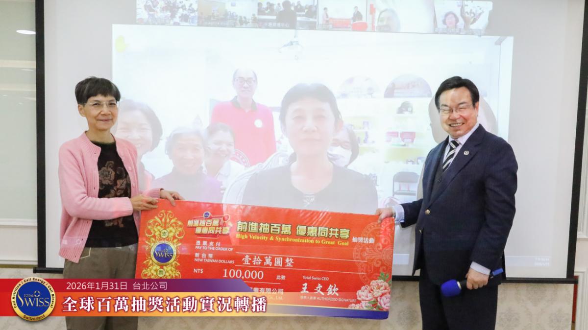 Total Swiss 第 49 回百萬抽獎全時實況轉播活動,於 2026 年 1 月 31 日在台北公司七樓舉行,並向全球各據點同步轉播。