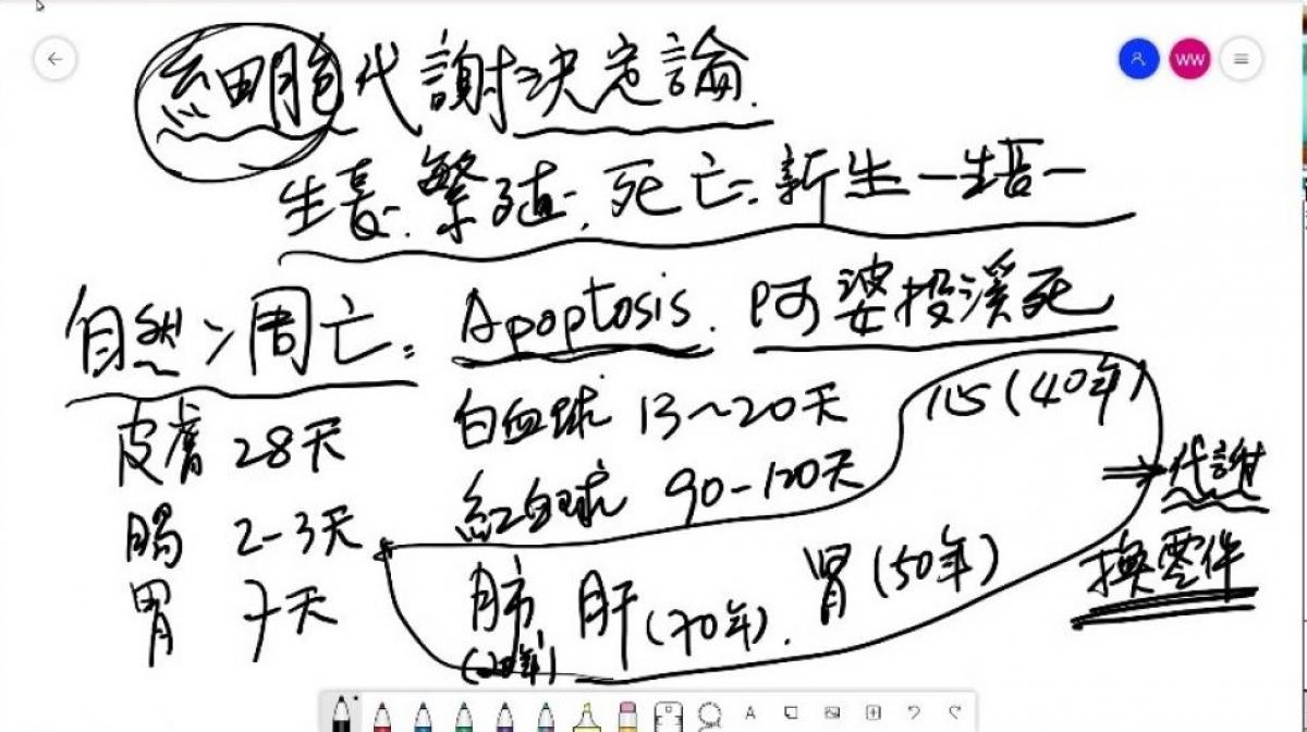 上次(禮拜二)我講到細胞決定論,講到細胞有自己吸收營養跟自己排除廢物的功能,還有接受刺激做出反應的功能;也提到了健康密碼365。昨天,有一位日本夥伴跟我說,雖然正常的體溫是36.5度,不過現在日本人的體溫好像有一點下降。