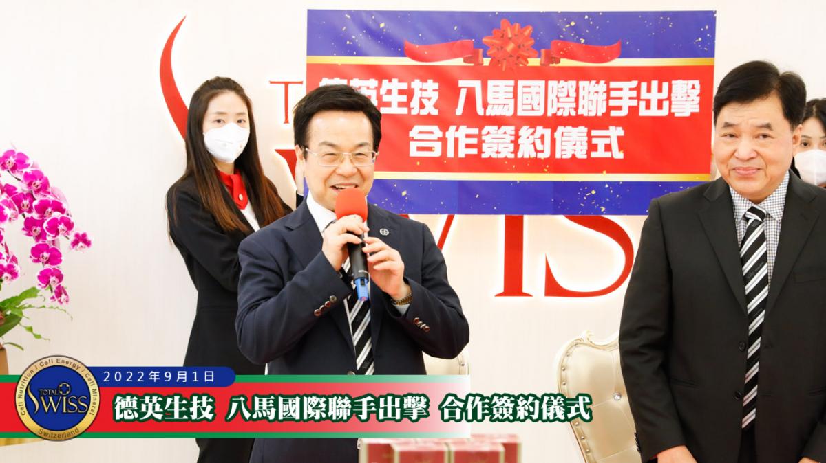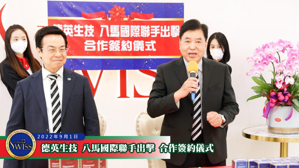 2022年9月1日上午11時,「德英生技、八馬國際聯手出擊 合作簽約儀式」在Total Swiss台北總部七樓隆重舉行。