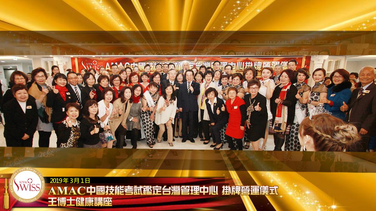 經過一個多月奔忙,Total Swiss全球創辦人王文欽博士在新加坡主持AMAC掛牌揭幕儀式及第12場健康講座之後,2019年3月1日,王博士回到台灣,於台北公司舉行AMAC掛牌揭幕及健康講座。