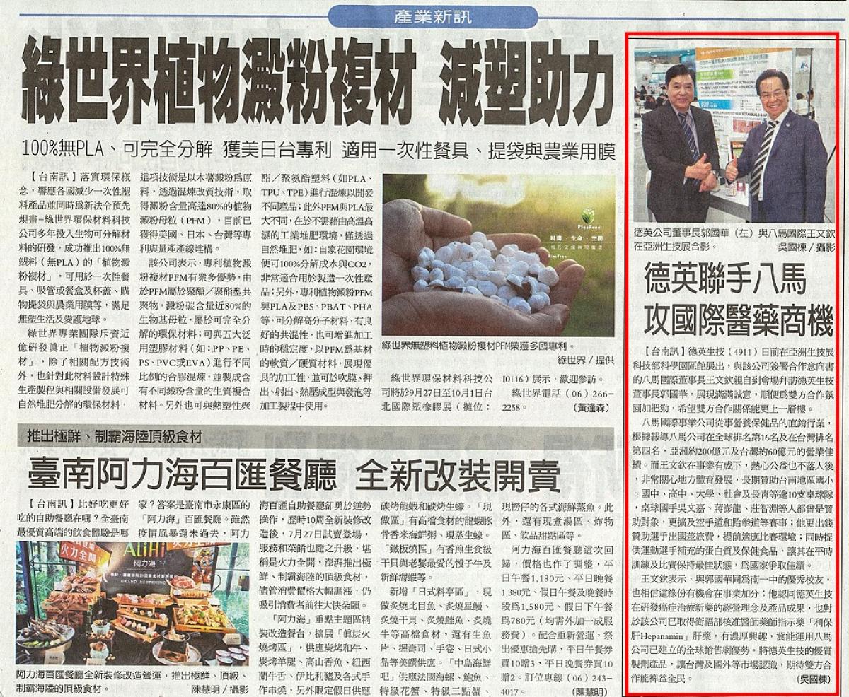 甫與八馬國際事業簽約合作的德英生技,也在科技部科學園區台南館場展出。