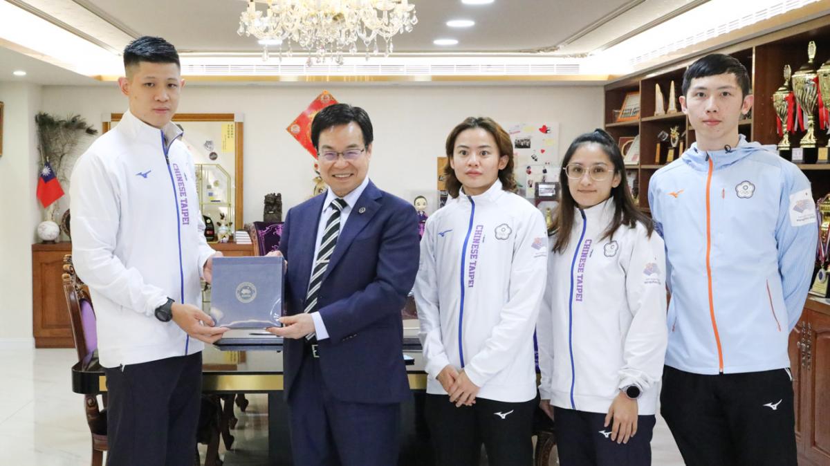 除了谷筱霜、辜翠萍兩人之外,一起拜會的還有在杭州亞運拿到第四名的吳峻維。