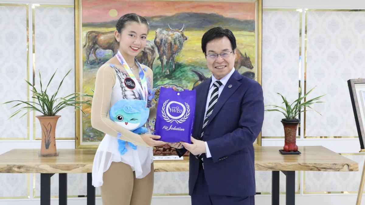 2023年11月3日下午,杭州亞運空手道金牌猛將谷筱霜、銀牌悍將辜翠萍;亞洲滑輪溜冰錦標賽男子組金牌陳毅帆、女子組金牌吳若瑄,先後來到Total Swiss台北公司七樓拜會王博士,一方面感謝王博士長期的支持照顧,一方面也把得獎的榮譽跟喜悅與王博士一起分享。