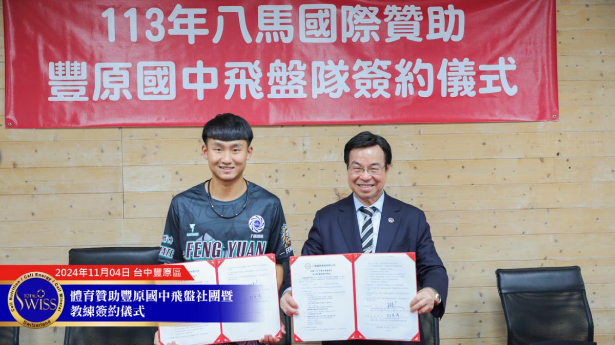 因為林教練為富春國小及豐原國中飛盤隊的成長做出明顯貢獻,王博士在贊助活動最後,也簽約贊助林教練,讓林教練能夠帶領豐原國中、富春國小的孩子們更上層樓。