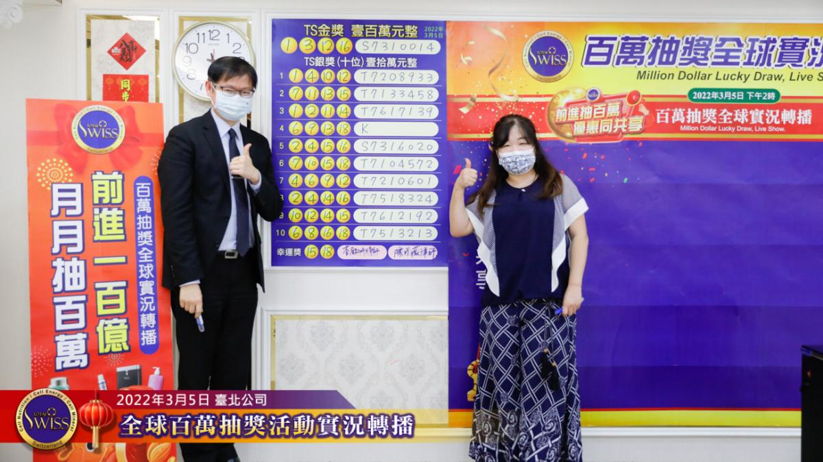 Total Swiss 第三次百萬大抽獎 台灣夥伴運氣旺,新加坡夥伴獨得一百萬