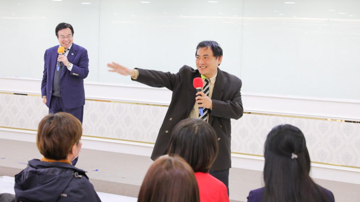 譚老師上完四個小時的課程後,王博士在最後,邀請上課學員上台分享心得,一方面驗收培訓課程的成果。一方面也在學員的分享中,切入一些他的想法與要求,以免誤解老師的話與課程的用意。