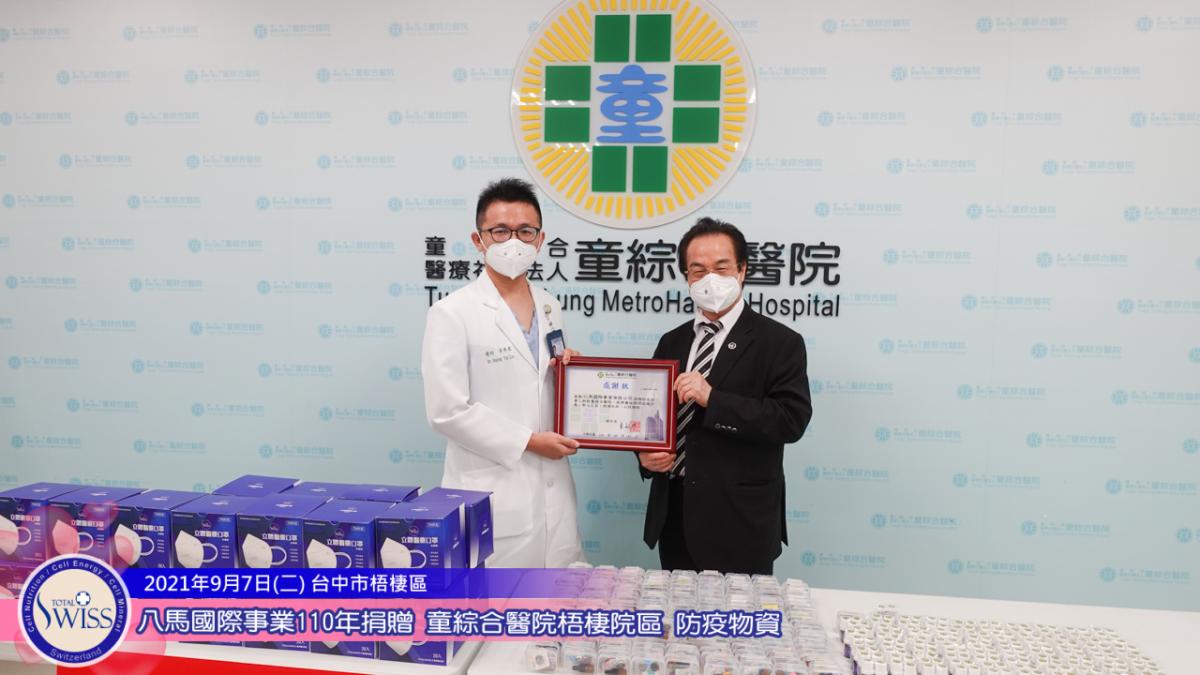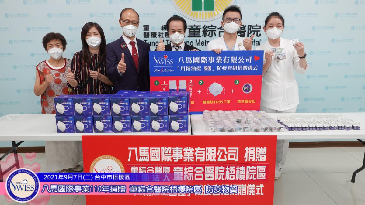 八馬國際本次共捐助一百人份防疫精油套組(精油兩百瓶,薰香扣兩百個,N95口罩500個)給台中慈濟醫院。