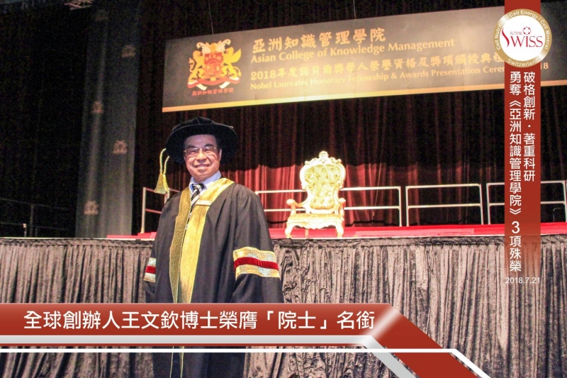 Total Swiss創辦人王文欽博士 榮膺亞洲知識管理學院 院士