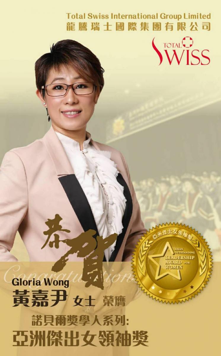 香港區總經理Gloria Wong,「榮獲諾貝爾學人獎-亞洲傑出女領袖獎」