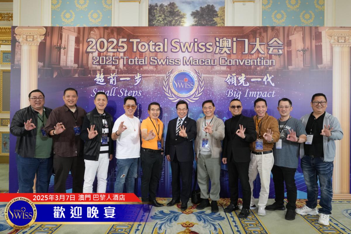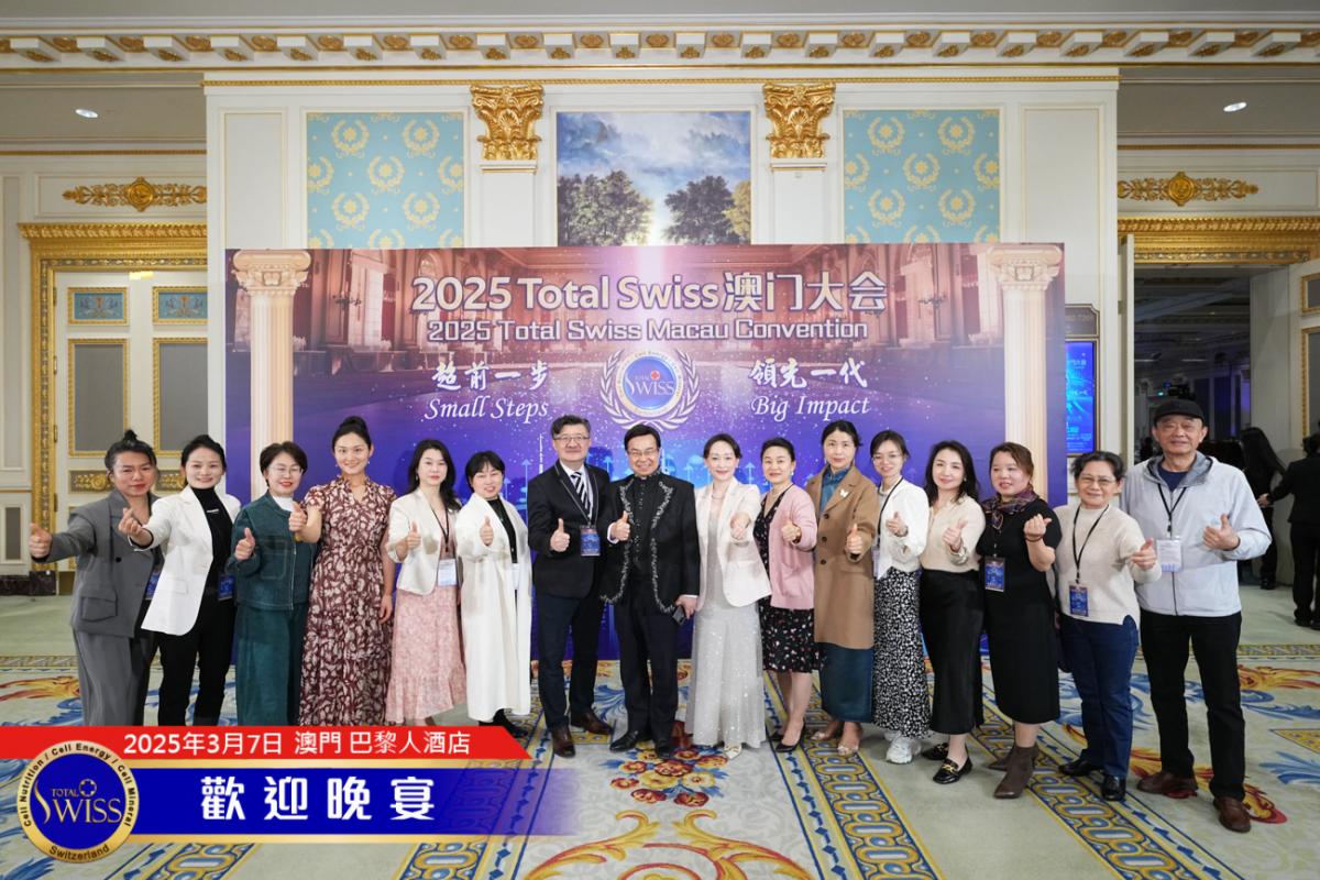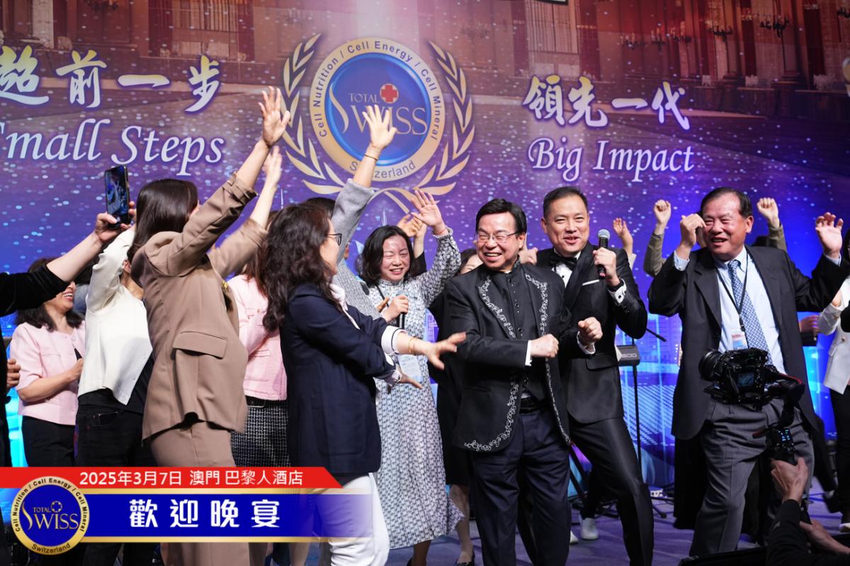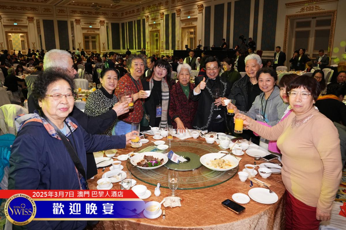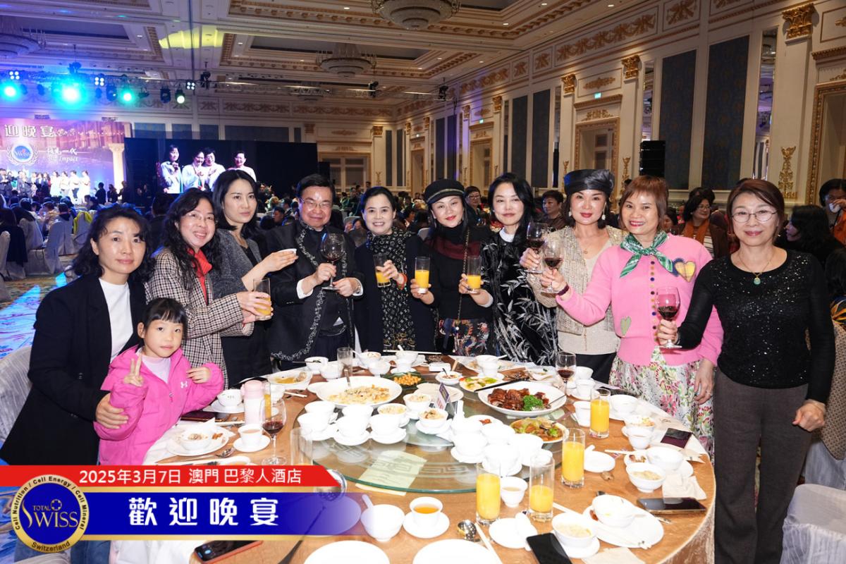 經過了台灣行政的用心籌畫以及大陸行政的全力支援,2025 Total Swiss澳門大會第一個重要活動,也可以稱為整個系列活動的序幕「巴黎人歡迎晚宴」於3月7日晚間舉行,七百多位來自大陸、菲律賓、新加坡、馬來西亞、印尼、韓國、日本、香港、台灣及澳洲的夥伴陸續入席之後,王博士於晚間六點半左右向全場家人舉杯,宣布晚宴正式開始。