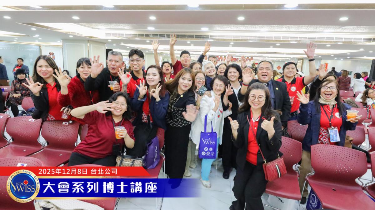 2025年12月8日,Total Swiss全球班聘系列活動最後一天,培訓課程的壓軸內容,由王博士親自上場,扮演Total Swiss醫療集團大轉型的擘畫師,並向全球夥伴展現出於2026年及以後Total Swiss遼闊而清晰的藍圖。有全球市場耕耘計畫,有藥局強化更新計畫,有線上行銷計畫,有台北港三萬坪基地建設計畫,每走一步,都是Total Swiss的大躍進,也是健康產業的新篇章。