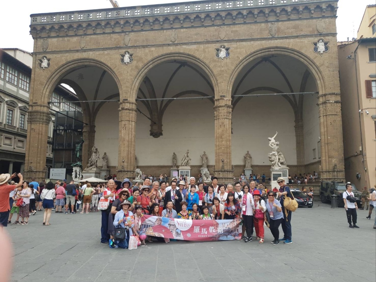 早上,夥伴們順著阿諾河散步。 探訪跨河的老橋,了解到這一座阿諾河僅存的歷史的古橋,如何躲過納粹破壞?又如何從一個魚市場轉身成為世界珠寶的一個重鎮? 然後,從老橋轉進一道古意盎然的岸邊長廊,再轉個彎,進入深窄的巷道,就是那一幢至今仍然可以感受到房屋主人傲骨的但丁故居。 憑弔過詩人不屈的精神,再轉個彎,走過佛羅倫斯的東西大道,前方就是領主廣場。 這一座四四方方的,看起來質樸無華的古跡,其實就是一座開放的大師雕塑藝術展覽場。 靜下心來,用一點專注,就可以在海神波塞頓、柯西莫一世、大衛像、伯爾修斯與美杜莎的首級等多處雕塑展品中與大師產生共鳴,進行對話。