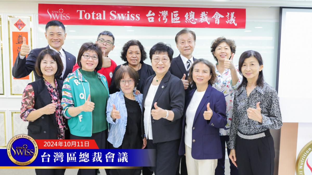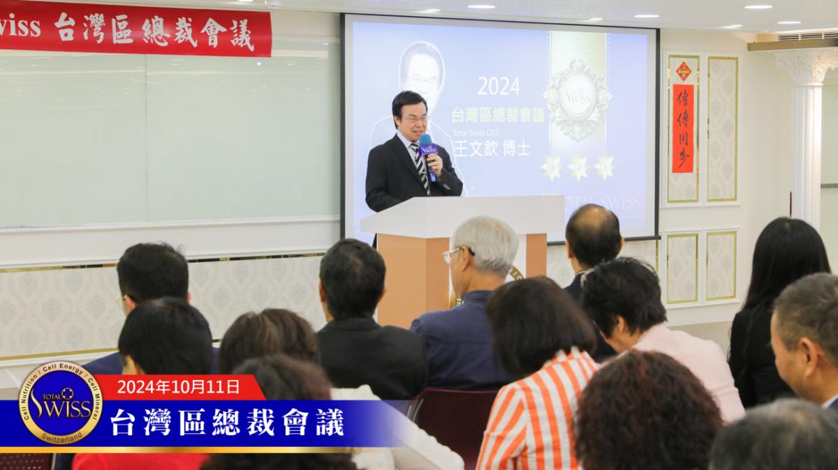 2024年10月11日1點鐘,Total Swiss在台北公司七樓召開2024年台灣區總裁會議,與之前健康講座偏向健康之道的教育不同,在今天的總裁會議中,王博士全程帶著一種有如親人一般的溫暖與真誠,細細的向總裁們分享他對Total Swiss未來的擘劃,以及他為所有夥伴事業發展的種種細膩考量。