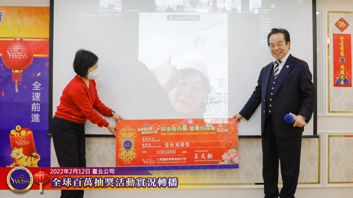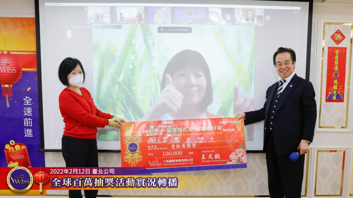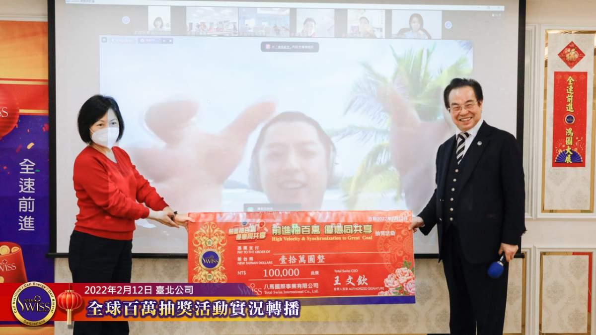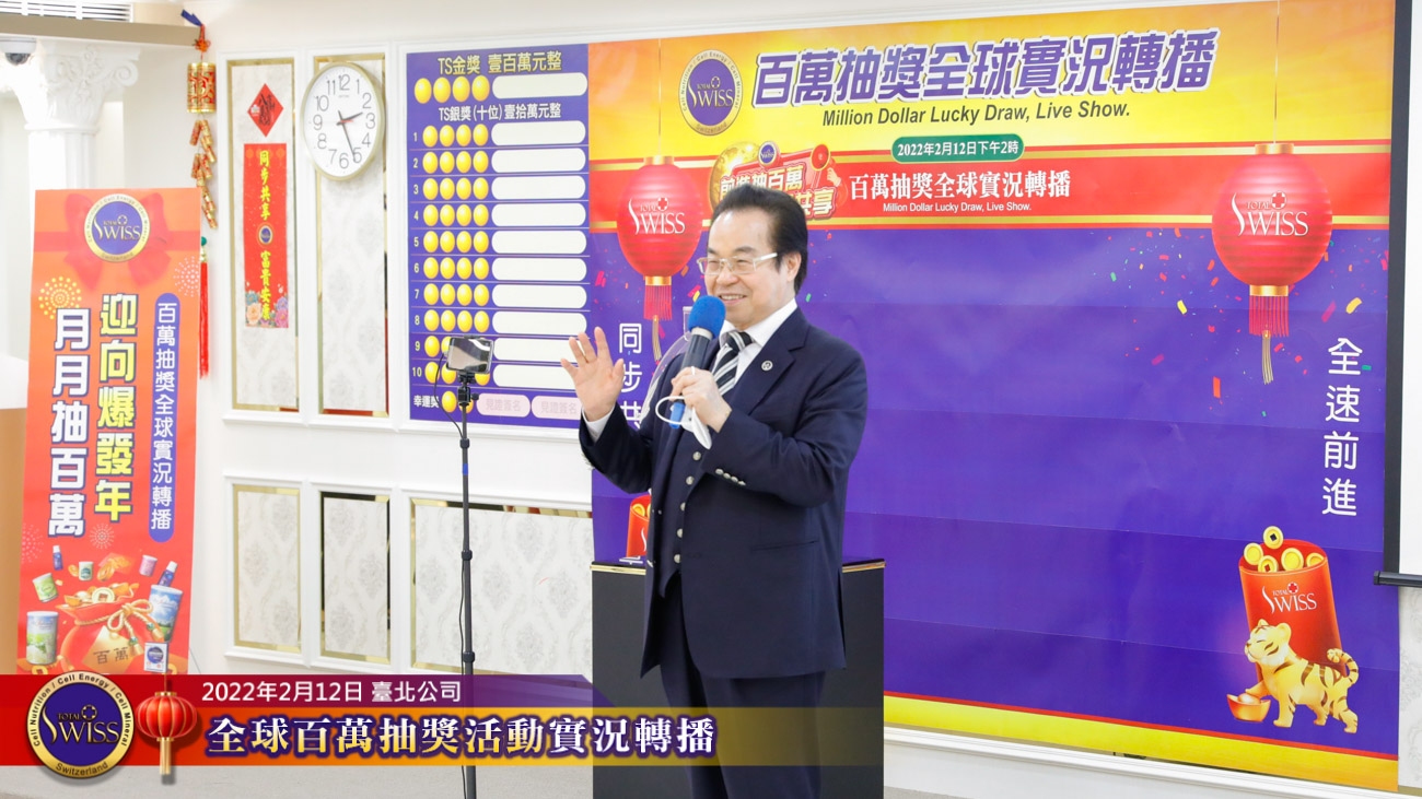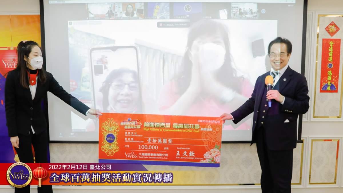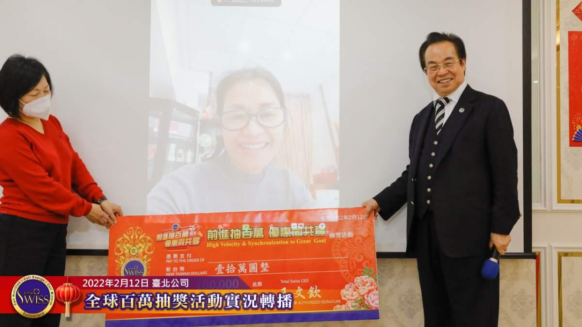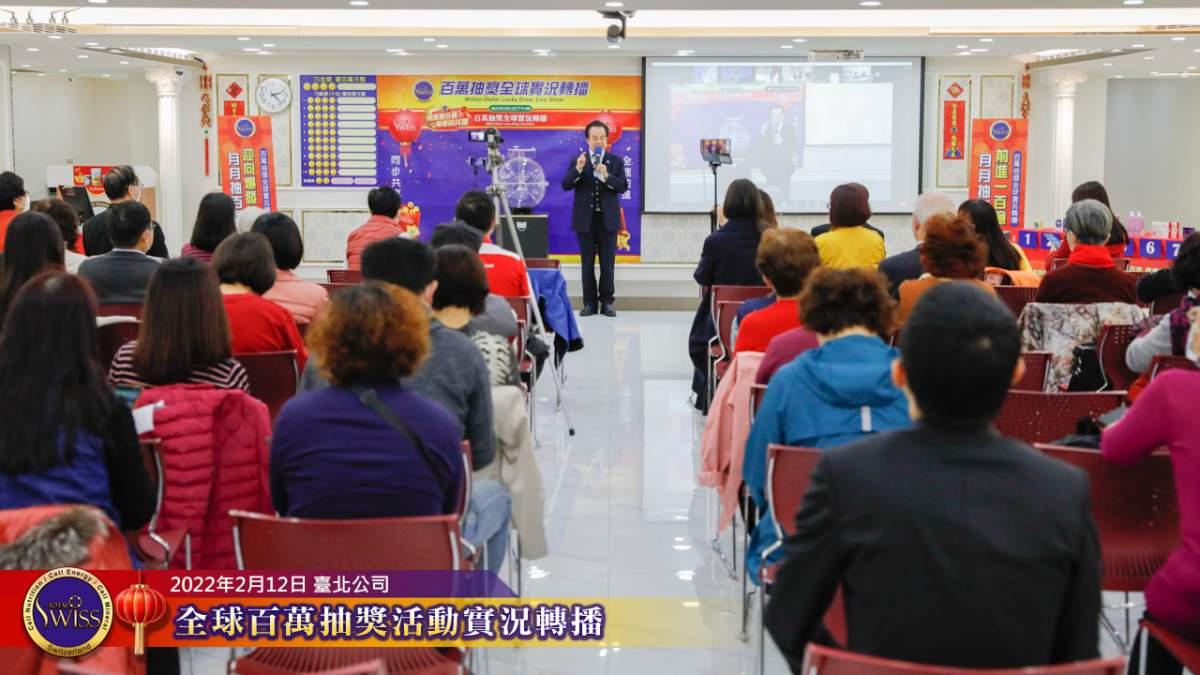 2月12日下午,百萬大抽獎活動於Total Swiss台北公司七樓舉行,除了到場的北部夥伴情緒緊張、心跳加速之外,透過視訊系統參加活動的全球夥伴也十分踴躍,每個人都希望一百萬元的大獎能夠落到自己的頭上。