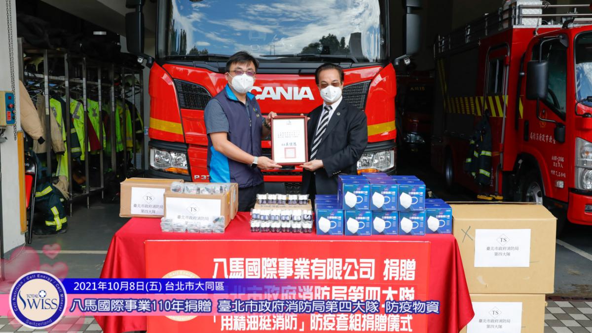 十月八日,八馬國際用精油挺前線的捐贈行動,繼續在台北市連辦三場,包括台北市消防局第四大隊、北投區里長聯誼會及士林區里長聯誼會等三個前線單位。台北市消防局第四大隊負責大同、士林、北投等三個行政區數十萬居民的消防安全,在防疫...