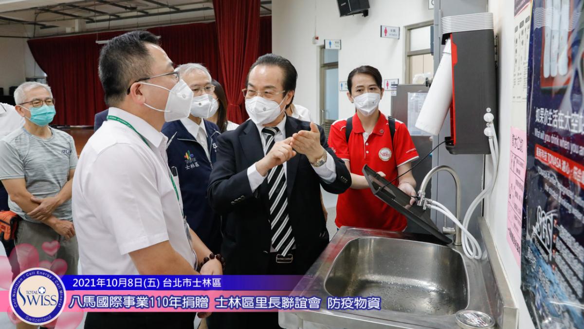 除了捐贈精油及N95口罩防疫套組之外,天山里、天和里活動中心同時也是386的一個新據點,因此防疫精油捐贈儀式同時也是386好水供應站的啟用儀式。