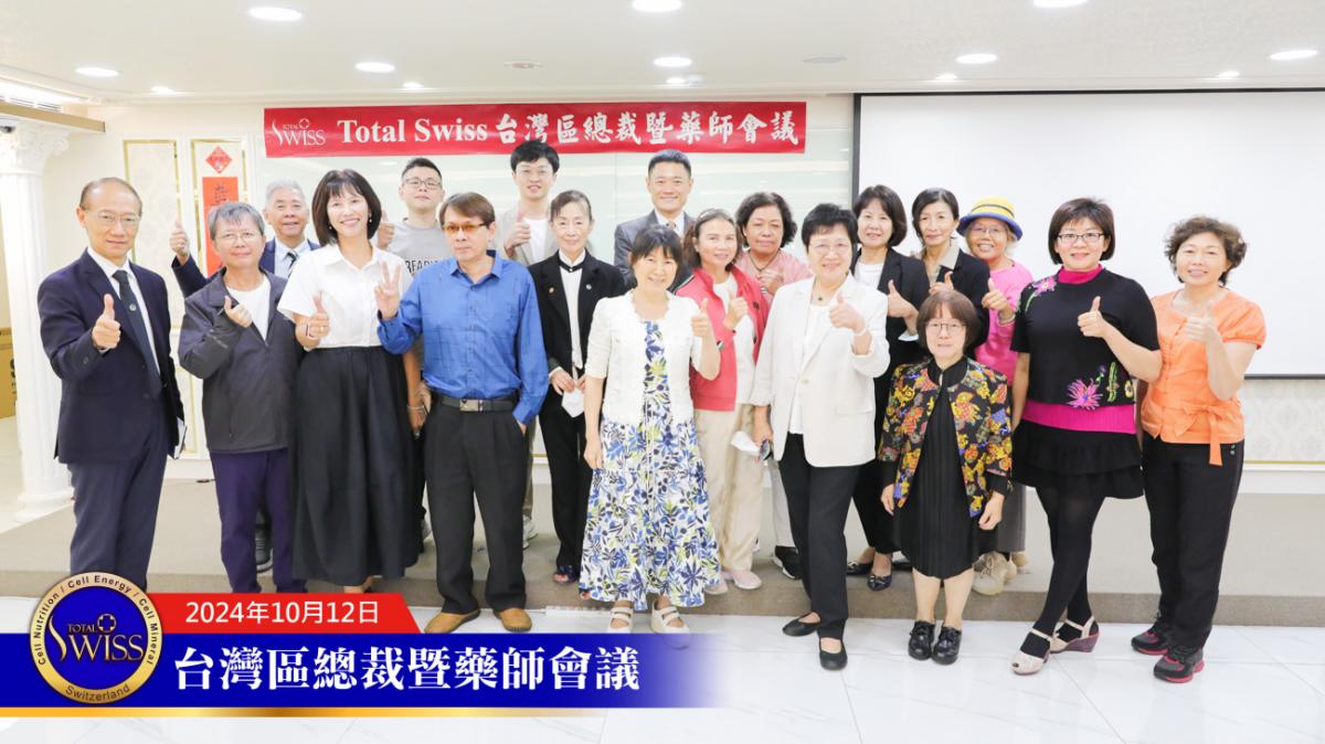 Total Swiss 2024年台灣區總裁會議第二天,除總裁、皇冠總裁之外,還有38位藥師也從各地前來加入會議。因此,10月12日的活動名稱,也特別另訂為「Total Swiss 台灣區總裁暨藥師會議」,用以凸顯38位藥師在會議中以及在Total Swiss未來發展進程中的重要性。