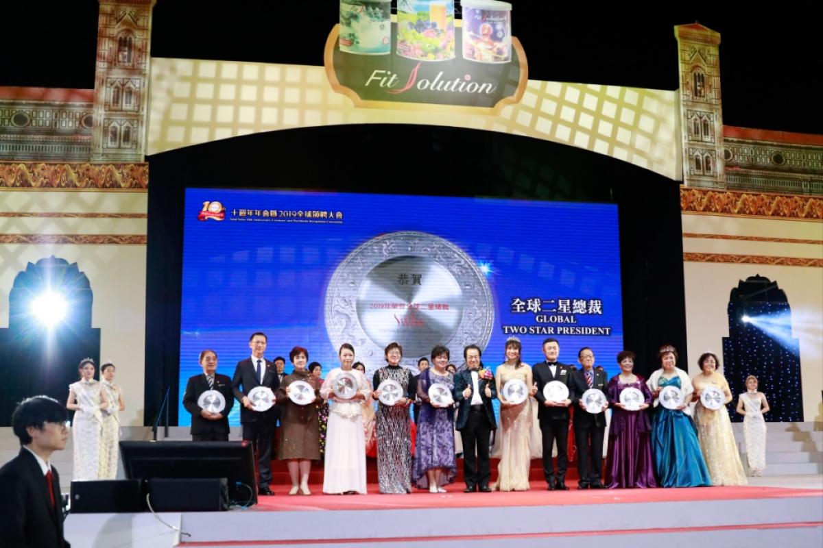 頒完一星,二星及皇冠總裁之後,由王博士揭曉2019年全球最高菁英名單,69位菁英並登上舞台宣讀全球菁英領袖承諾宣言: