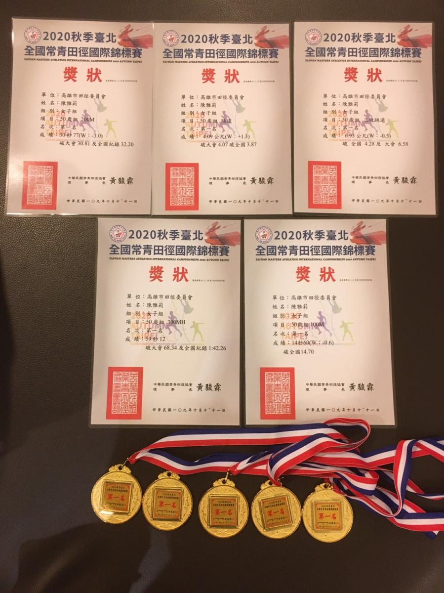 十月十至十一日, 2020年全國長青田徑國際錦標賽假台北市立田徑場舉行,賽場上,美魔女陳雅莉無疑成為全場鋒頭最健的風雲人物,陳雅莉一舉囊括50歲組200米短跑、50歲組跳遠、50歲組三級跳遠、50歲組100米短跑、50歲...