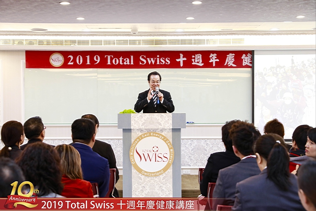 Total Swiss十周年年會暨2019頒聘大會第二天,2019年12月13日,王博士在Total Swiss台北辦公室二樓舉辦健康講座。