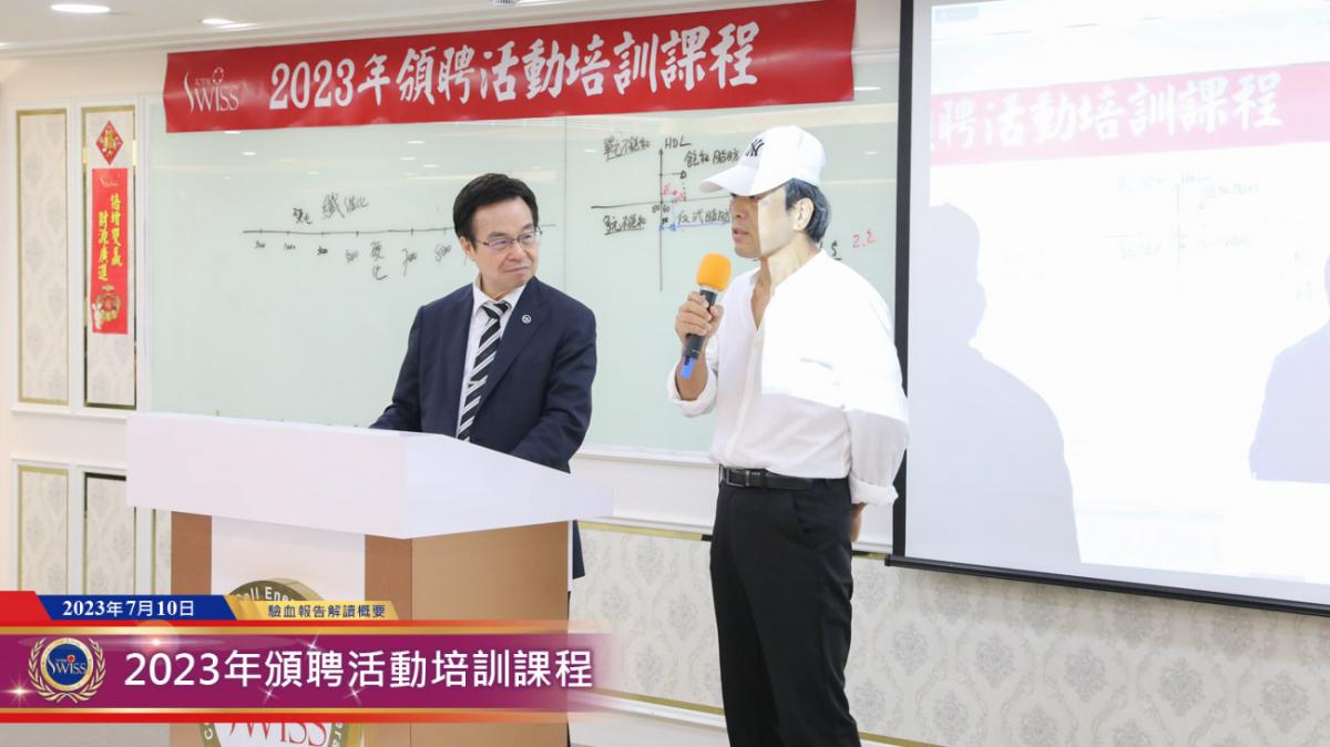 2023年7月10日下午,來自全球在今年五月符合D1資格的近千位夥伴齊聚台北公司七樓教室,聽取Total Swiss五大論述之驗血報告課程,整整一個下午,王博士一個數字一個數字,手把手的詳細講解「驗血報告解讀概要」,希望晉升D1以上的夥伴,都能好好學習並掌握Total Swiss健康之道的尚方寶劍。