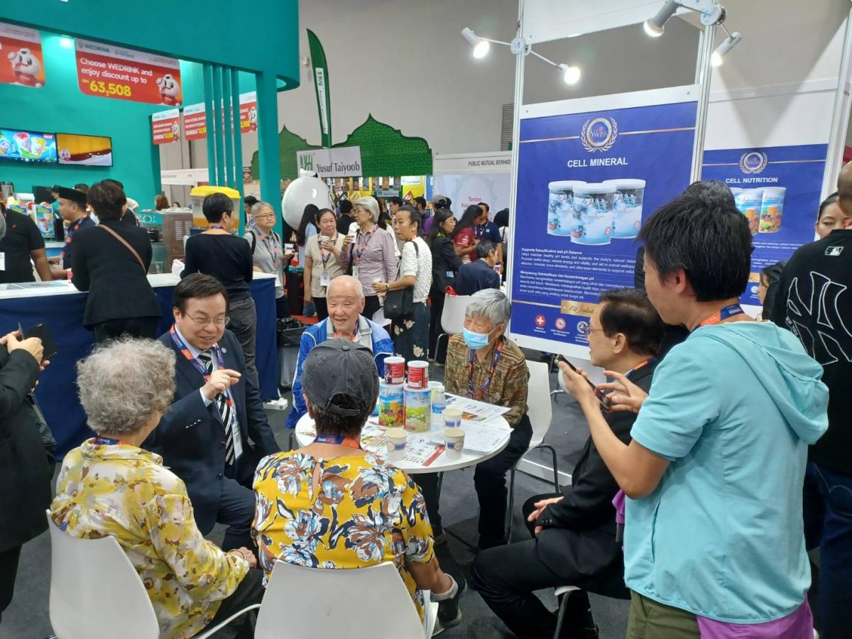 經過了第一天的洗禮與摸索,原本還不善於把握在展場進行分享的新馬印夥伴,好像都同時開了掛一樣,在MIHAS 2025(2025年馬來西亞國際清真展)第二天,一開展就展現了無比的熱情與分享力。當然,也很快地就把Total Swiss展位的人潮帶動起來,面對幾乎加倍的試喝人潮,王博士則一如在每一次展覽那樣,一桌又一桌,細心的接待由現場夥伴引薦的有潛力的參訪人士。