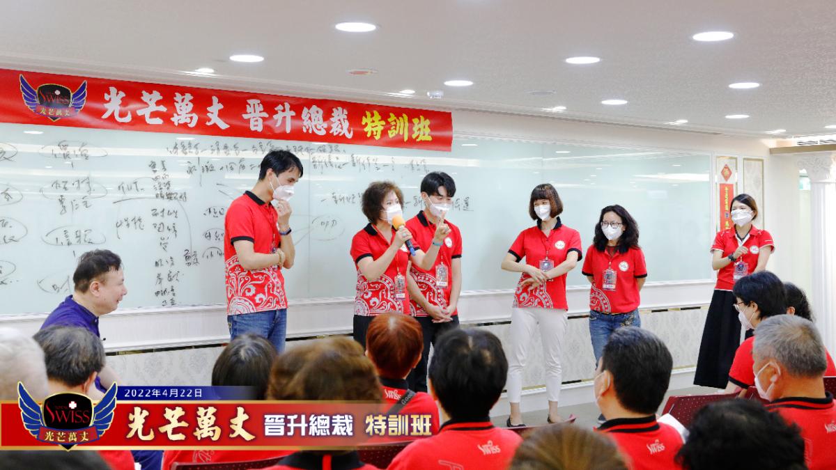 鍾老師表示,人生的兩大驅動力,就是追求快樂、排拒痛苦。為什麼很多人在做直銷時做得那麼痛苦,那是因為介紹產品、拉新人,讓他覺得沒面子。但老師認為,有勇氣、能把痛苦變成快樂的人才能收獲更多,就像有勇氣上台分享的人,會得到老師給予的更多feedback(回饋)。「國父革命11次才成功,做Total Swiss比這輕鬆多了。」