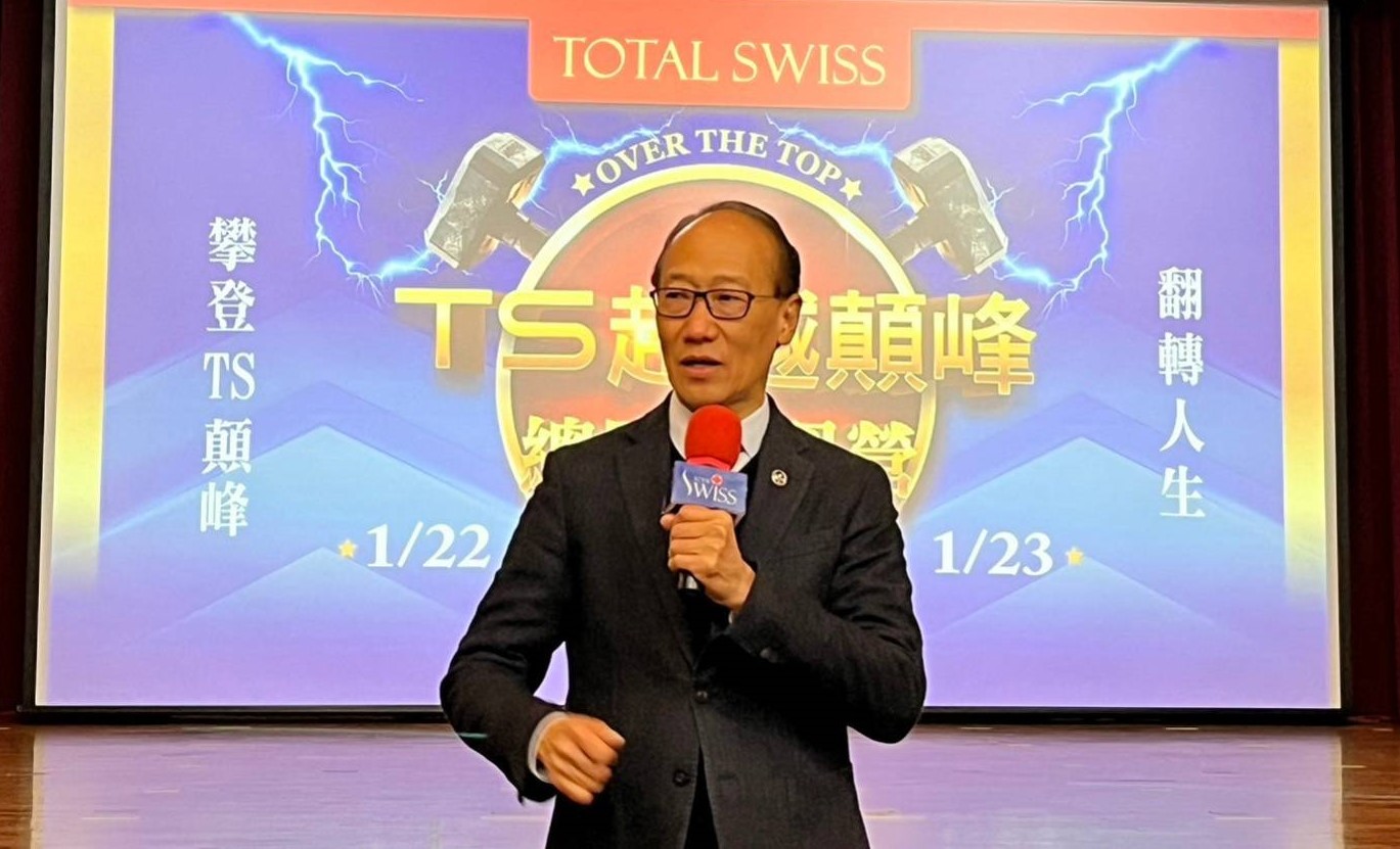 各位,你今天加入Total Swiss,我非常歡迎。因為,我一定會帶你走到那個實現夢想的路;我一定會帶著大家翻過那個高牆,因為我也跟大家一起走在那一個朝理想前進之路。我跟各位一起翻過高牆、越過現實,期許我們再做五年、十年、十五年、二十年,屆時,我們一定會成為世界第一。