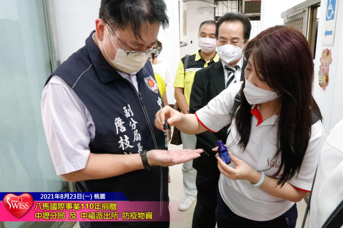 對於Total Swiss的捐贈活動,詹副局長備感窩心,因為Total Swiss是第一家在疫情之後用行動關懷中壢員警的企業,而Cover19防疫精油套組,也正是警察同仁們最迫切需要的防疫物資。