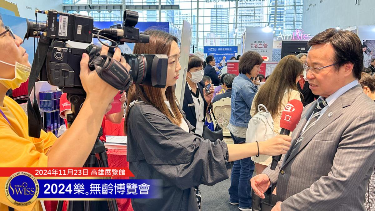 下午四點鐘,Total Swiss的人氣甚至引來媒體的注意,三立電視台來到現場採訪,請王博士向社會大眾分享此次參展的看法。