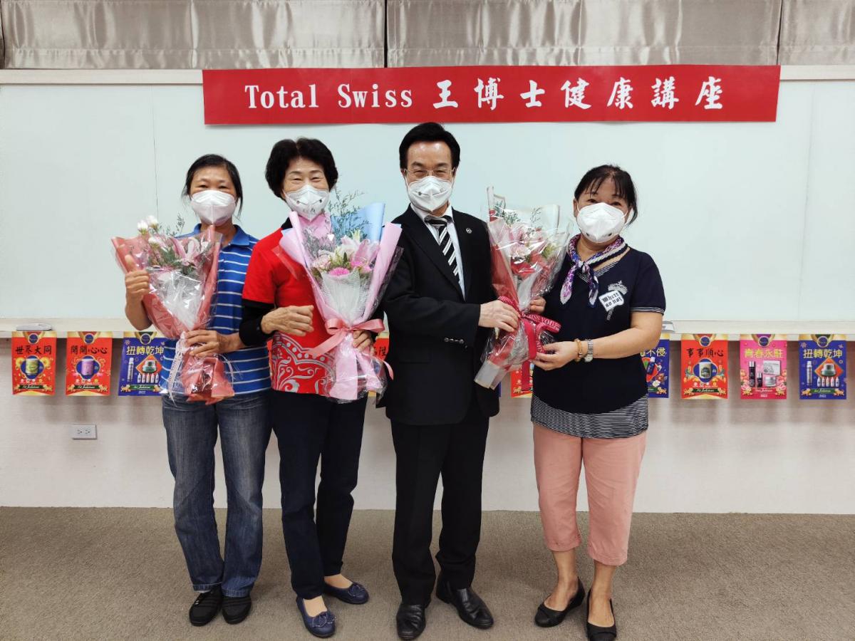 下午一點鐘,王博士在嘉義公司舉辦健康講座,在主持人張在心副總開場後,嘉義總裁、斗六386加水站、東勢386加水站、民雄386加水站代表,就等不及的紛紛上台向王博士獻花,以表達對王博士堅定領導全體TS夥伴823戰勝929的感佩,2022年8月23日,我們獲得高院判決無罪定讞。。所有人也士氣昂揚的期望,王博士領導全體事業夥伴,快速邁入獨占鰲頭、世界第一嶄新紀元。
