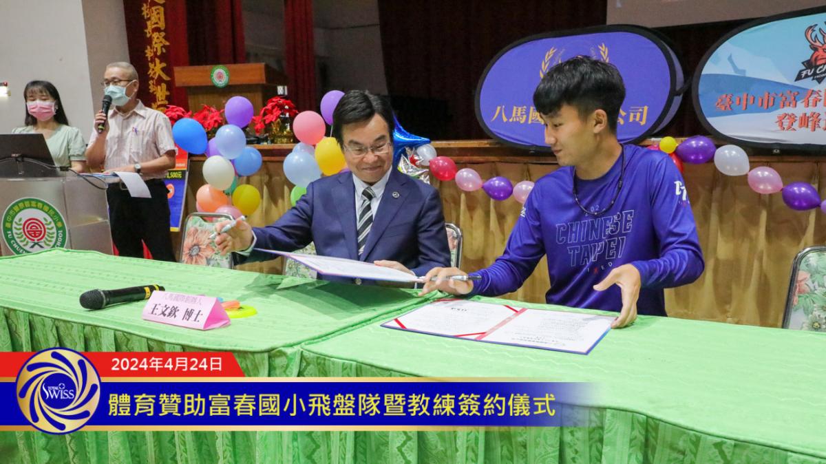 本次簽約,除了贊助富春飛盤隊76萬經費及341萬營養補充品,合計贊助總金額超過418萬元之外,王博士還另外贊助幫助飛盤隊持續精進的教練林家峰獎助金與營養品,總贊助金額達37萬餘元。
