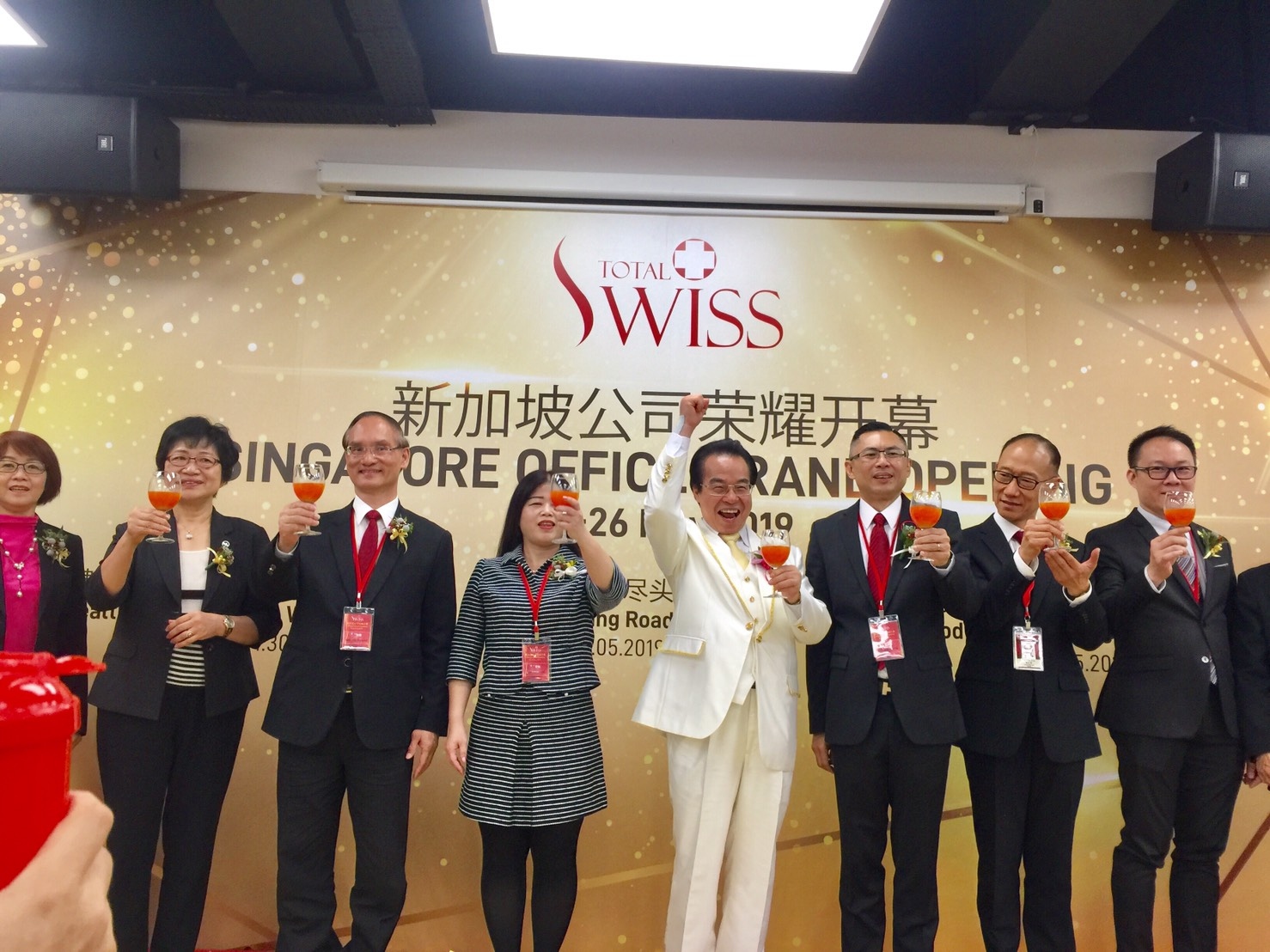 新加坡是Total Swiss最早的起家市場之一,2010年1月,Total Swiss新加坡公司創立於宏茂橋,經過數年發展,於2016年喬遷進入王博士在巴耶利峇廣場購買的新地址。2018年9月間,王博士選定巴耶利峇 ACE大樓更有整體性的寬敞空間,作為新加坡新總部的新址,除了提供新加坡夥伴有一個更好的環境外,也是所有海外夥伴在新加坡的家。