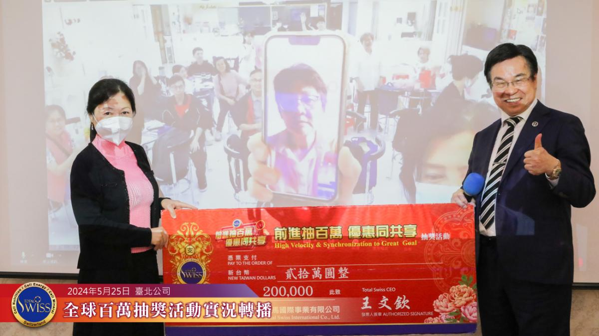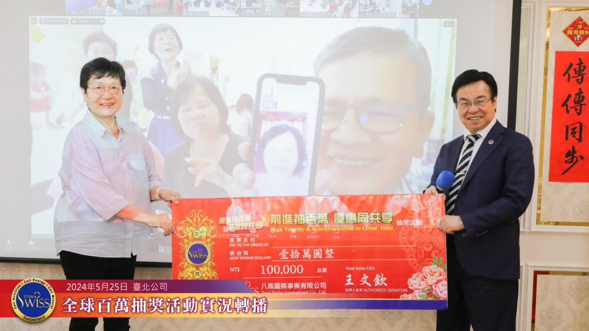 第28回Total Swiss全球百萬抽獎好運特別眷顧台灣夥伴,抱走了兩個100萬元金獎及4個銀獎等6個獎項。不過,第29回全球百萬抽獎則出現了另外一種的戲劇性結果,10個銀獎跟1個金獎,只送出了2個,共有8個銀獎及1個金獎因為空號結果被累積到下個月。