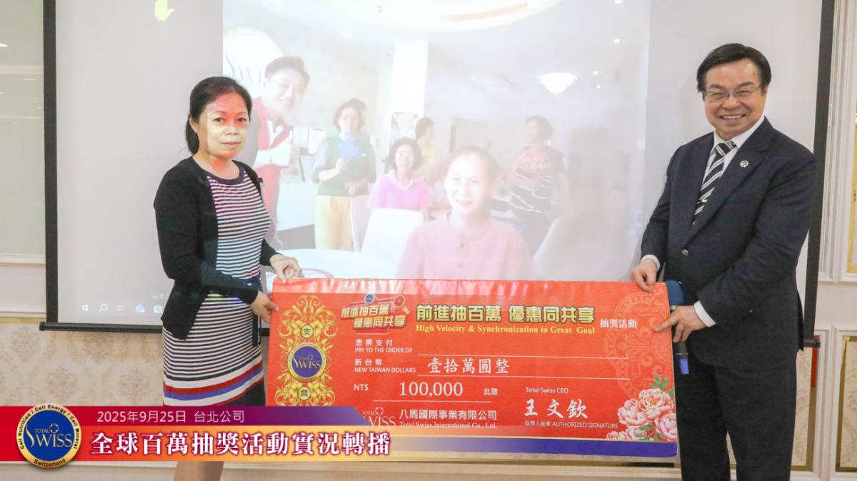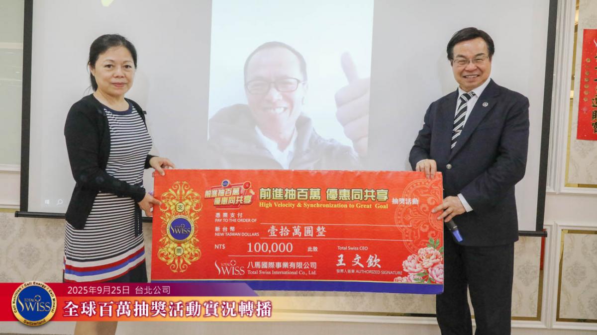 Total Swiss第四十五回百萬抽獎台灣夥伴蟬聯大贏家,連續兩個月抱走兩個金獎一百萬