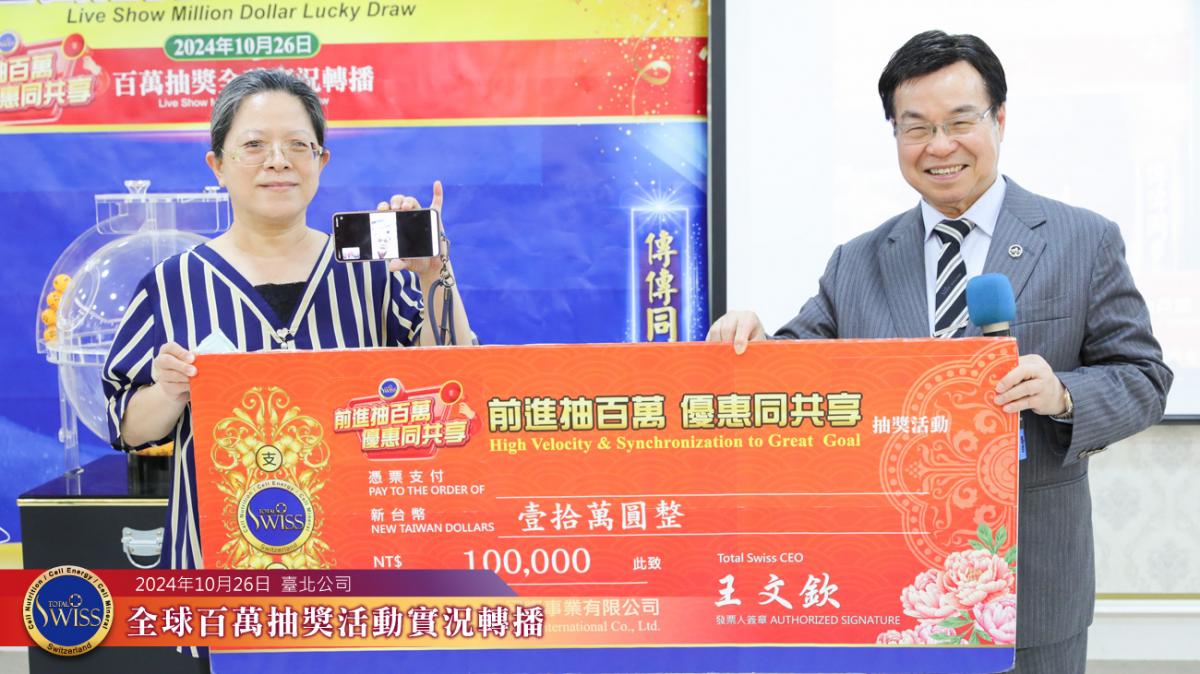 2024年10月26日下午,Total Swiss第34回全球百萬抽獎暨王博士健康講座在台北公司七樓舉行,由於第33回抽獎活動百萬金獎得主在台北現場誕生,10月26日的抽獎,有百萬氣場的台北現場很快就座無虛席、全場爆滿。
