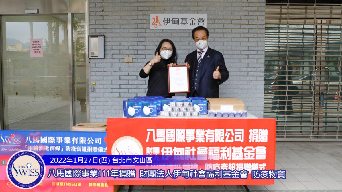 繼1月18日在台北市中興醫院進行第47場用精油挺前線活動之後,1月27日,Total Swiss用精油挺前線再次邁開腳步,前往台北市萬芳社區伊甸社會福利基金會總會,捐贈一百人份防疫精油套組給伊甸基金會,幫助基金會人員可以更安心的守護身心障礙者。