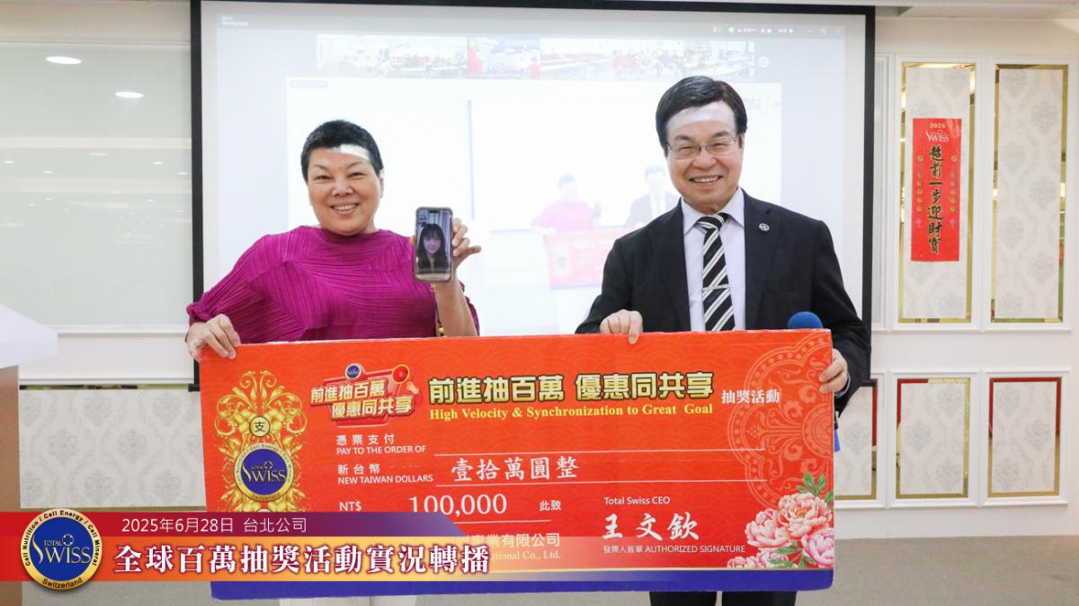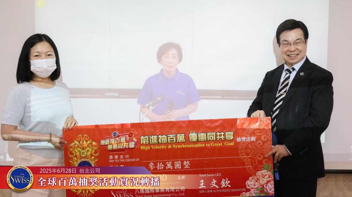 第42回Total Swiss全球百萬抽獎活動於2025年6月28日下午於台北總部7樓舉行,並透過連線向全球各據點同步放送。
