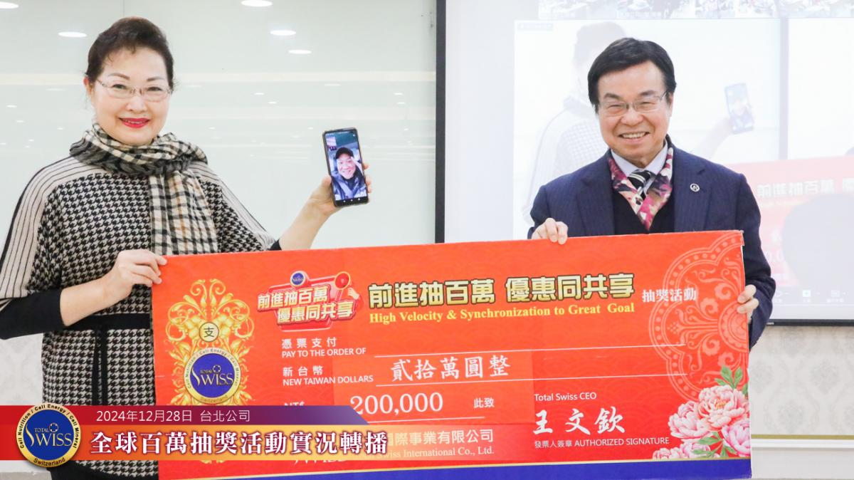 12月28日下午,Total Swiss第三十六回全球百萬抽獎在台北公司七樓舉行,不只完成了一個歷史性的紀錄,還繼續將百萬抽獎活動延伸進入第四個年頭。