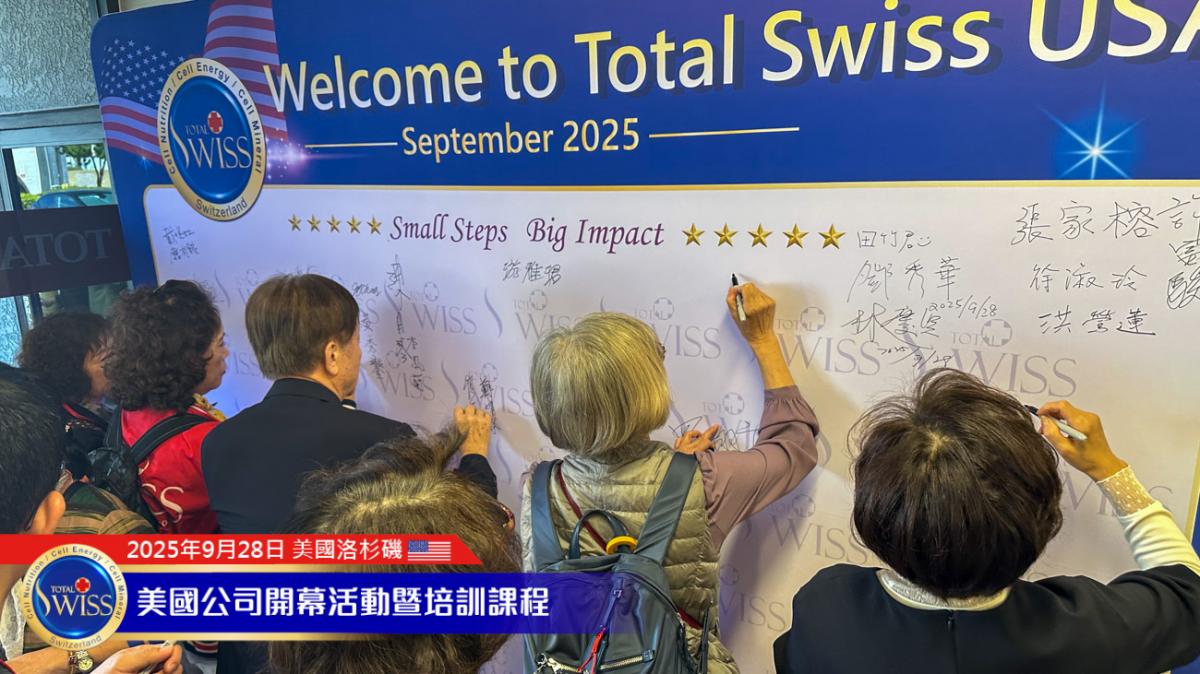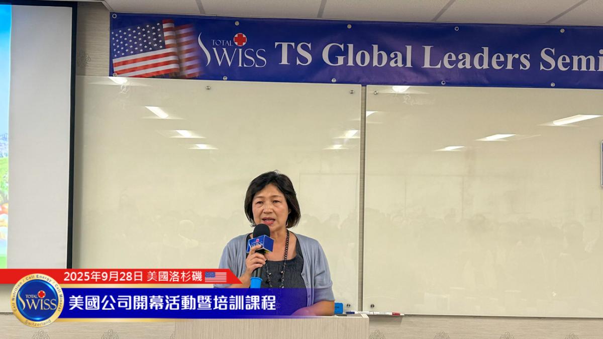 美西時間9月28日下午,Total Swiss USA盛大開幕系列首場活動於加州核桃市Total Swiss美國公司二樓舉行。內容包括夥伴的健康見證、Amy姐與金東元兩位CCP的事業分享,以及王博士的全產品講座與對Total Swiss未來發展的規劃。每個環節都為Total Swiss在美國這個擁有3億人口且具有強大消費力的市場,注入了加速發展的豐沛能量。