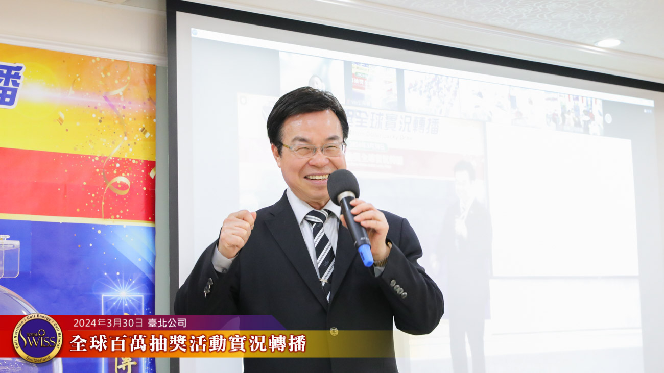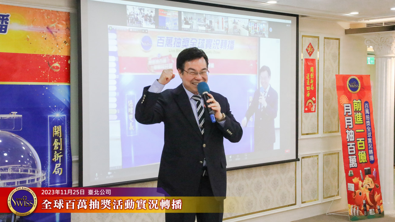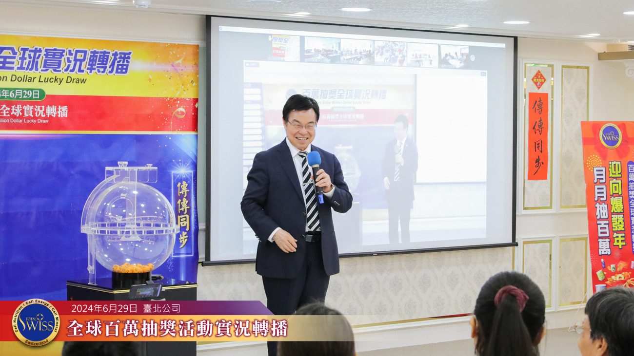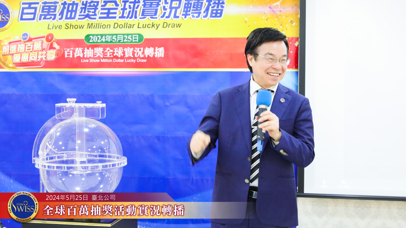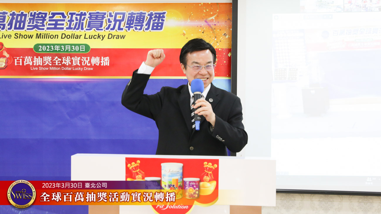 在完成第45回全球百萬抽獎頒獎後,王博士在講...