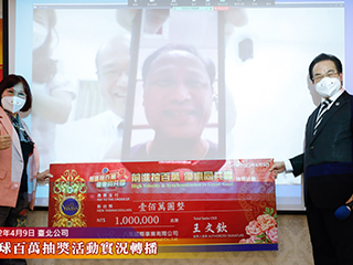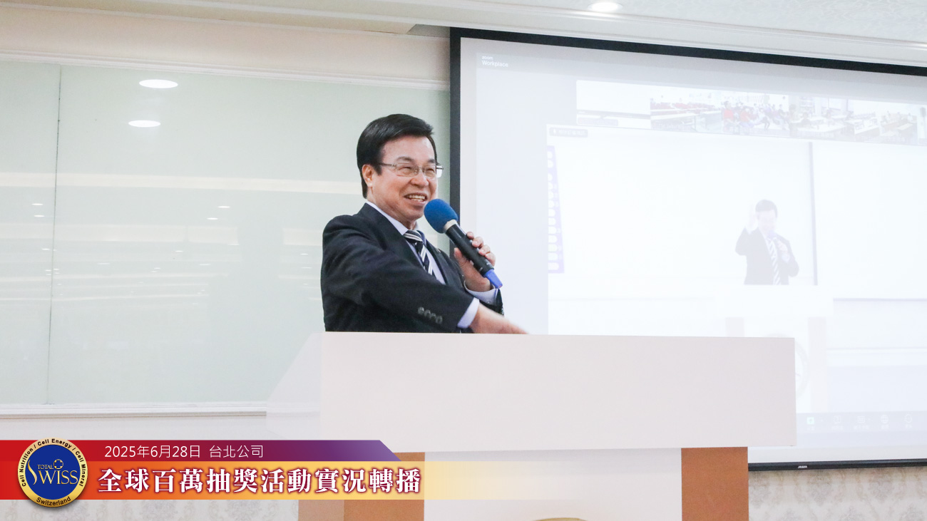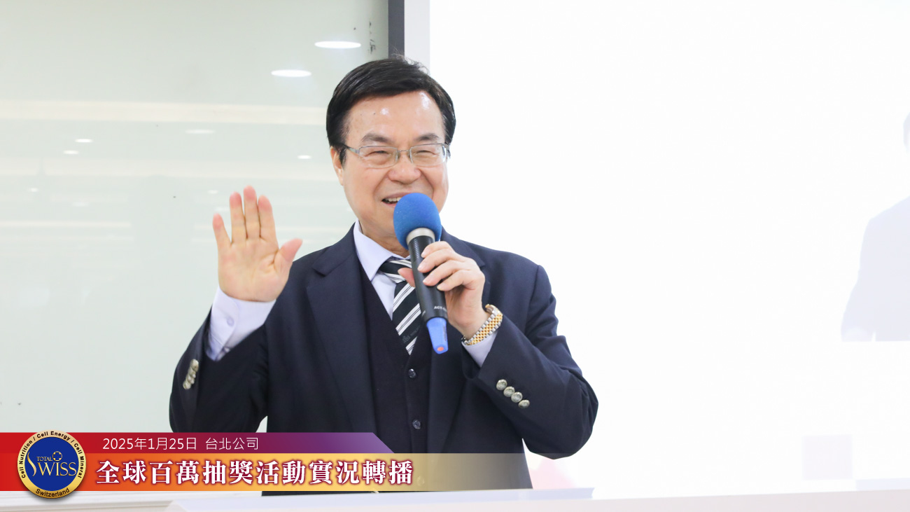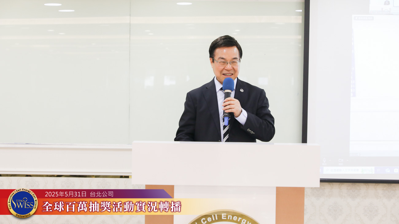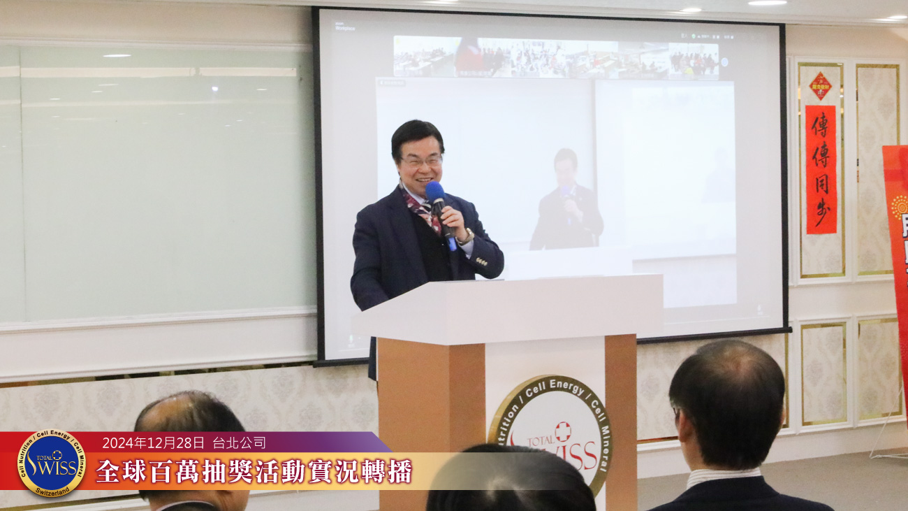 在完成第45回全球百萬抽獎頒獎後,王博士在講...