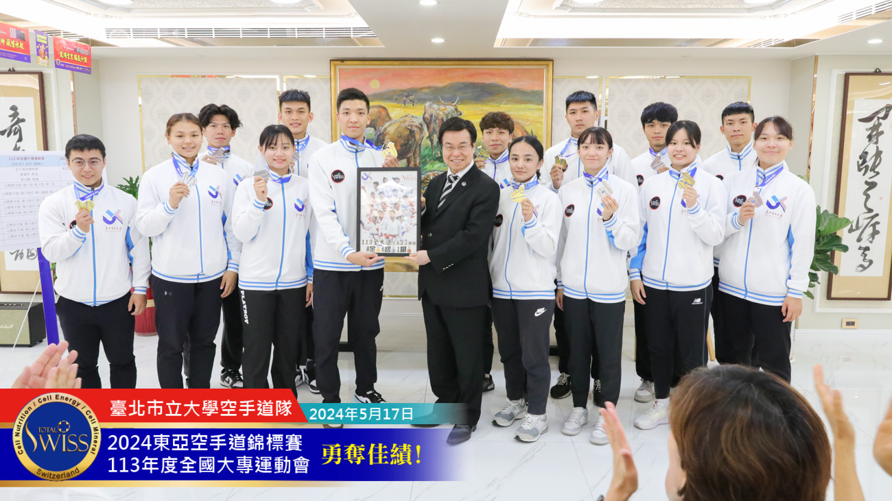 臺北市立大學體育院空手道專長選手為感念王文欽博士長期支持與贊助台北市立大學空手道隊...