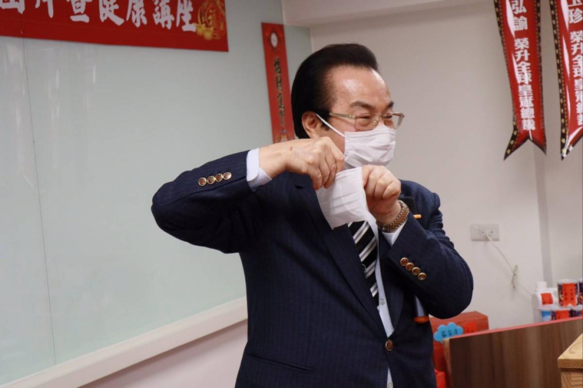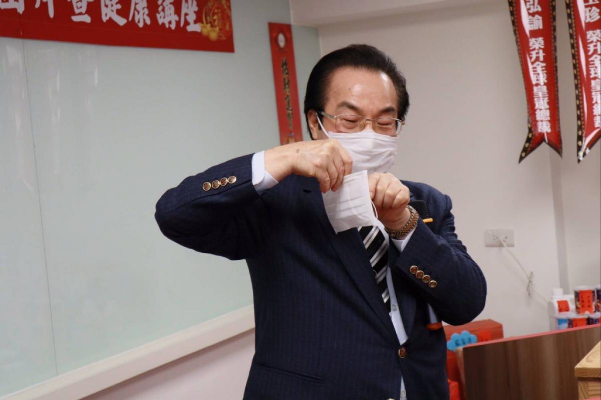 王博士曾經在研究室裡待了很久,對於使用口罩相當熟悉。但是他知道,一般人其實並不太會戴口罩,有時候甚至連正反面都搞錯。因此,在講台上,他還像飛機上的空姐一樣,一個動作一個動作,分解示範如何正確使用口罩才能真正得到更縝密的保護。